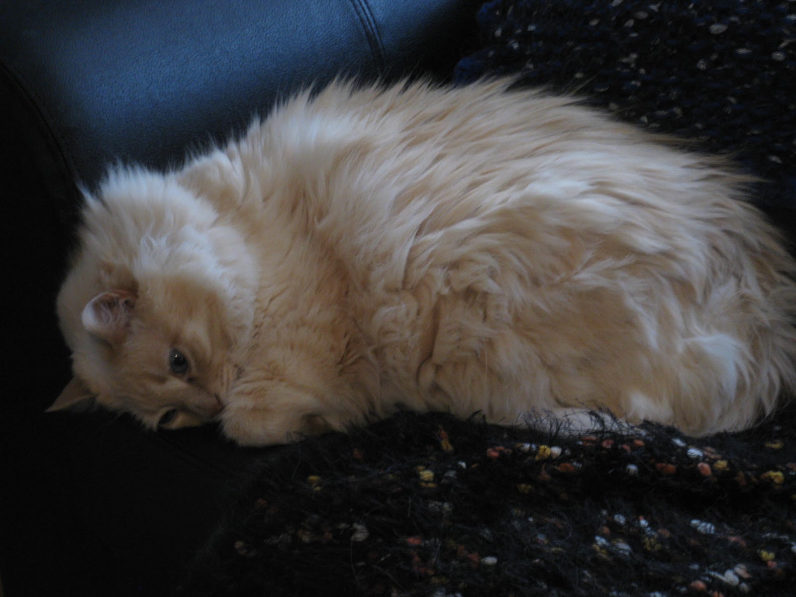 My sis bean is coming from college too. We are resting up! You look adorable snoozing there. Purrs and headbutts.